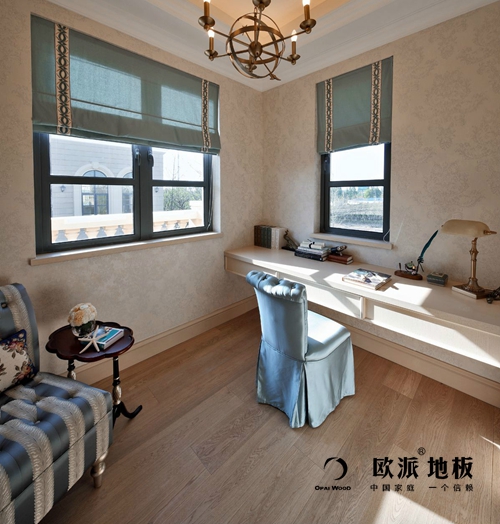 簡歐風(fēng)格的家具以簡潔著稱,與橡木、楓木、松木、胡桃木等大紋理木地板相得益彰。在顏色的選擇上,更適合中性偏深色的木地板,沉穩(wěn)的色調(diào)更能突顯居室的檔次。此外,色彩柔和、質(zhì)地柔軟的軟木地板也不失為一個(gè)很好的選擇。