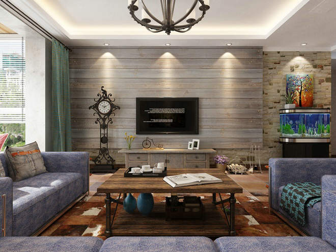 淺色的木地板背景墻,加上同一色系的電視柜,還有木質(zhì)的茶幾。給人來(lái)自大自然的氣息。