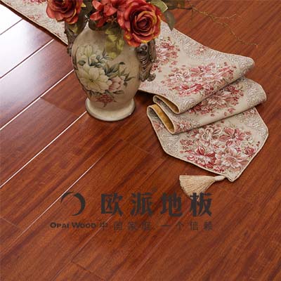 強(qiáng)化地板一般是由四層材料復(fù)合組成,即耐磨層、裝飾層、高密度基材層、平衡(防潮)層。合格的強(qiáng)化地板是以一層或多層浸漬熱固氨基樹脂覆蓋在高密度板等基材表面,背面加平衡防潮層、正面加裝飾層和耐磨層經(jīng)熱壓而成。